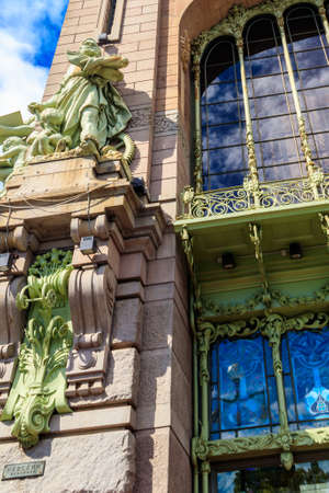 BARCELONA, SPAIN - MAY 16, 2017: View of the details of one of the modernist buildings in historical part of Barcelona.