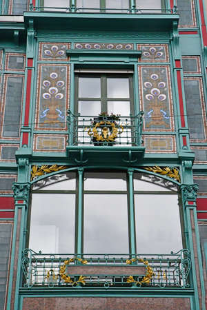 Detail of Art Nouveau (Jugenstil) building in the historic old town center of Riga, Latvia