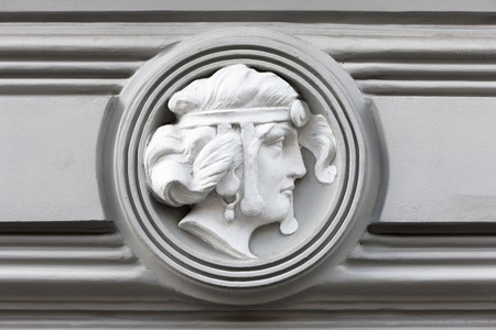 Bas-relief of a woman in a circle on an old house in the city of Riga