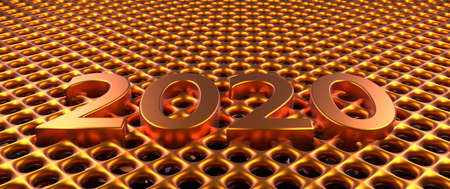 Shiny golden metal grid pattern with Year 2020 using as modern background, 3d rendering