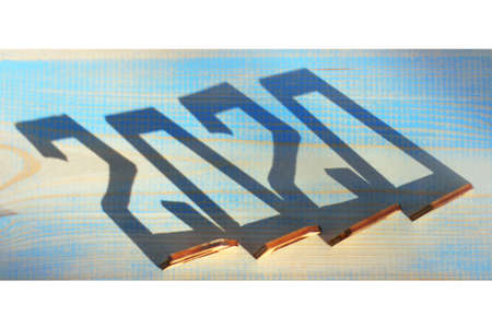 wooden figures cast a shadow in the shape of the number 2020. new year is coming soon