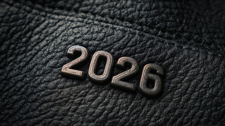 2026 embossed on textured leather surface, symbolizing future and new beginnings. sleek design evokes sense of modernity and anticipation