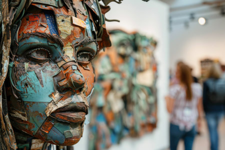 unique sculpture made from recycled materials, displayed in an eco-friendly art exhibit.