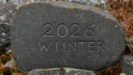 Granite sign with the inscription 2026 Winter on a stone