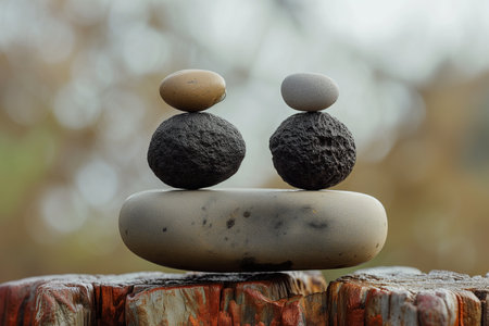 A stack of multi-colored stones balanced carefully, suggesting themes of stability, peace, and zen-like tranquility.