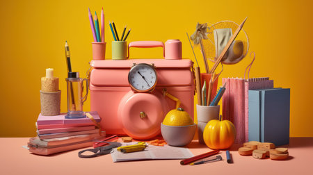 A vibrant spread of office supplies and craft materials showcasing an array of colors on a table surface. Perfect for creative projects, organization, and workspace inspiration.