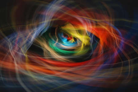 Abstract background of colorful lines in motion on black. Bokeh of defocused splashes, blurred red and blue neon leds, fireworks and salute, space and sky backdrop