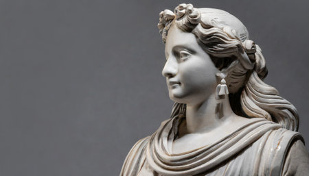 Marble statue of an ancient Greek woman, close-up.
