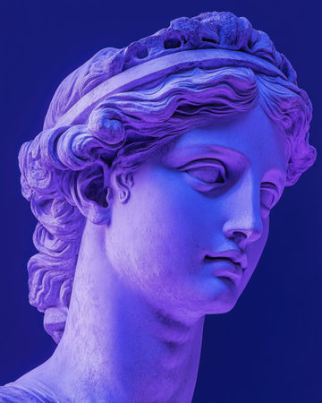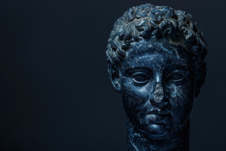 ancient greek statue head in dark blue tones