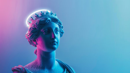 Neon Greek Goddess Bust with Glowing Halo in Modern Art Display