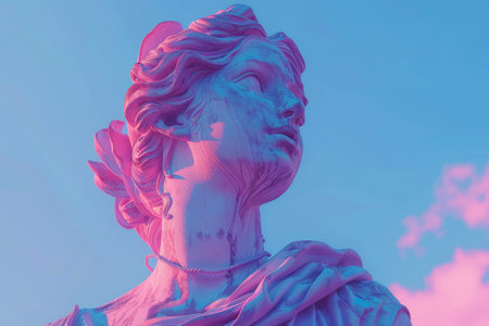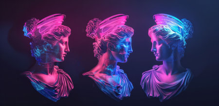 Digital Art of Cracked Classical Statue with Neon Pink and Blue Lighting