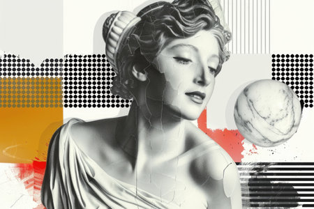Venera statue collage: modern art featuring contemporary interpretations of Venera statues, a fusion of sculpture and collage techniques, presenting innovative and expressive compositions.