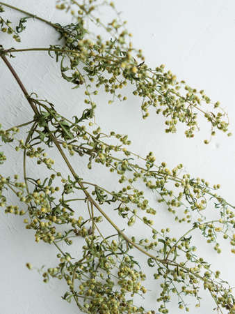 Bunch of wormwood herb on a table. Medicinal aromatic herbs
