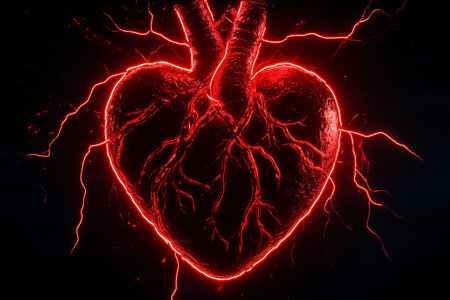 Dynamic red heart illustration with glowing veins and electric energy effects