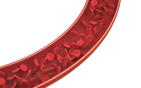 Red blood cells in the blood vessel, 3d rendering. Computer digital drawing.