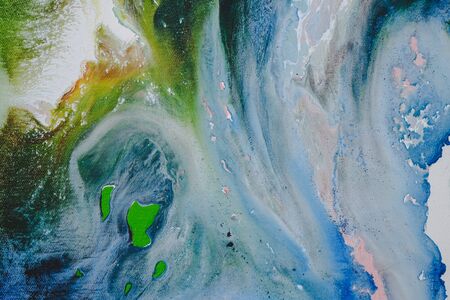 Marbled blue and green abstract background. Liquid marble ink pattern.