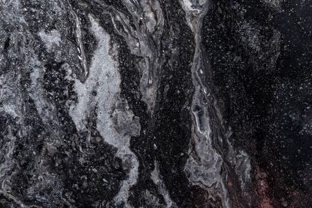 Bubble fluid. Oil liquid texture. Defocused dark black white paint in water round shiny drop spreading on abstract art background.