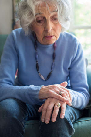 Senior woman at home suffering from arthritis