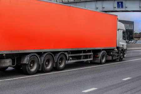 Unrecognizable truck transport on road. Transport overpasses on the highway for the transport of orders and goods