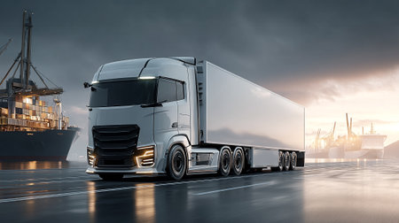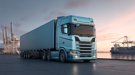 Dynamic Transport Truck at Industrial Port Delivering Cargo with Speed and Efficiency