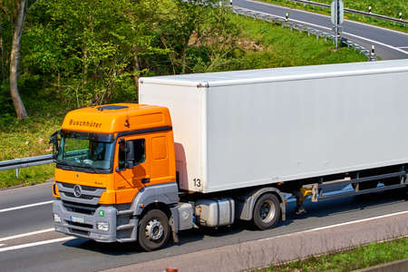 DUSSELDORF ,GERMANY - APRIL 20, 2017: transport truck on the highway on April 20,2017 in Dusseldorf, Germany. truck on asphalt road