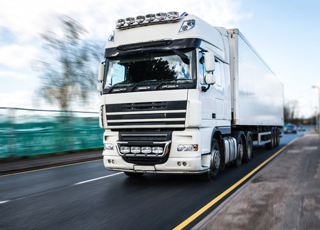 white heavy goods vehicle in motion
