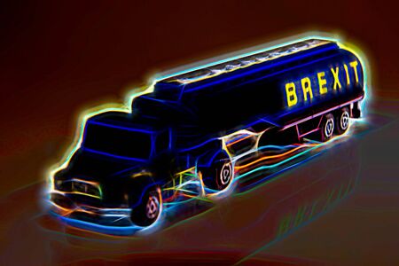 A typical Fuel Truck shown in the colour dark blue with the word 'Brexit' on the side. Fuel looking to be just one of the issues of Brexit.