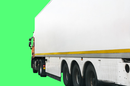 Truck or lorry trailer cut out. Isolated on green screen to add your own background and logo