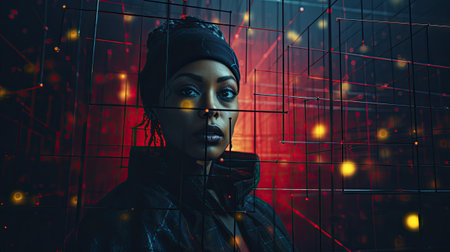 portrait of androids model, with blurred background and dramatic lighting, created with generative ai
