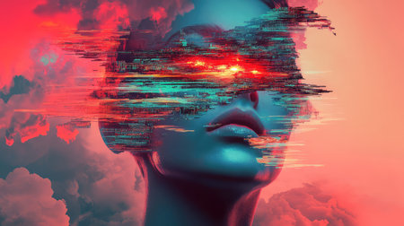 Vibrant digital glitch art showcasing contrasting hues and eye-catching patterns