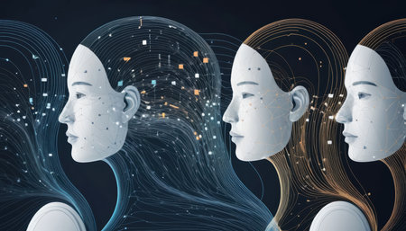 This artwork presents a series of human-like faces, blending technology and creativity.