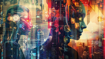 Cuttingedgetechnologymerginghumaninteractionwithroboticsandartificialintelligence. Concept Cutting-Edge Technology, Human-Robot Interaction, Artificial Intelligence, Robotics, Innovation,
