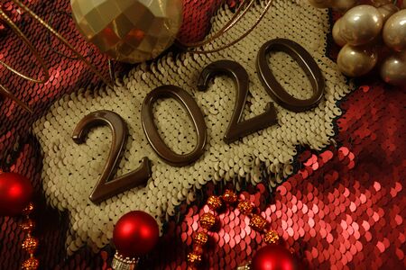Happy New Year 2020. Symbol from number 2020 on brown background