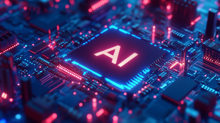 Tech Future Year 2026 Computer Chip with Futuristic Blue Lights Symbolizing Technology Innovation.