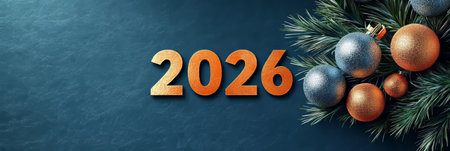 New Year 2026, Christmas Background with Numbers 2026 and Festive Decor, Holiday Greeting Card.