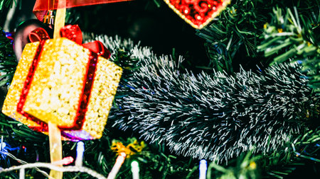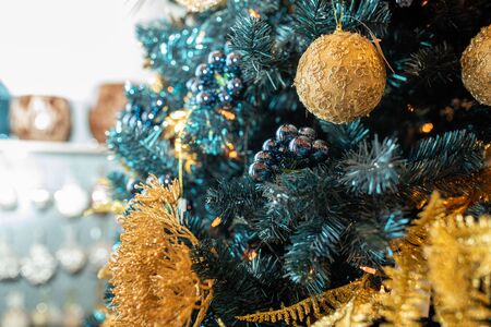 Christmas tree with Christmas decorations is indoor shooting close-up