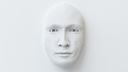 White pixelated face recognition. Facial authentication or identification concept. 3D rendering illustration