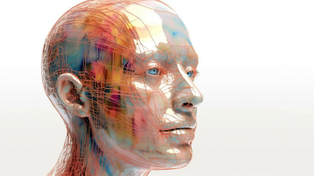 Visionary Female Portrait Stunning Fusion of Data Circuitry and Elegant Biological Precision