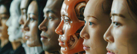 This digital artwork showcases futuristic robotic faces, emphasizing the blend of technology and art in artificial intelligence. The intricate details and sleek design invite viewers into a world of imagination.