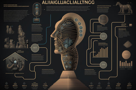 A human head outline features intricate schematics representing various artificial intelligence mechanisms, showing advanced technology concepts.