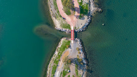 Generative AI : Aerial view of fortress on rock island in Black Sea seaside town of Sile in Istanbul Turkey
