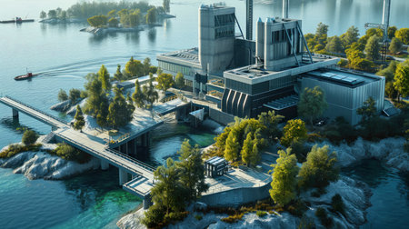 Modern Hydrogen Power Plant Infrastructure on a Bright Day with Piping and Storage Tanks