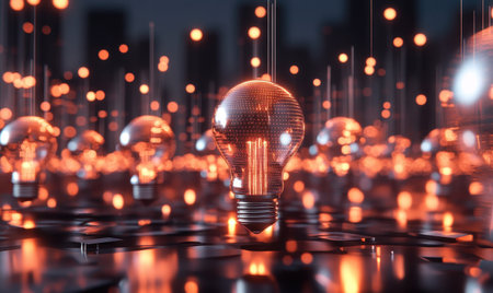 Bright light bulbs connected in a web, lighting up a dark space and symbolizing the synergy of creativity and business growth.