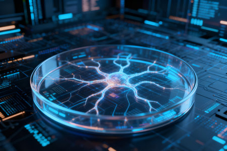 Glowing nerve cells in futuristic space backdrop generated by artificial intelligence