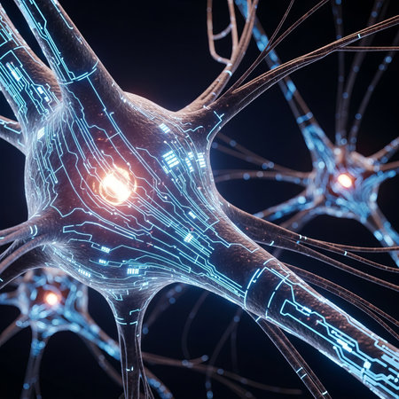 Visual display of neurons connected by intricate networks, showing technology and biology synergy.