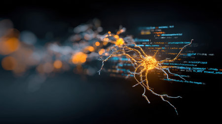 Abstract visualization of a neural network with glowing synapses and interconnected nodes representation.