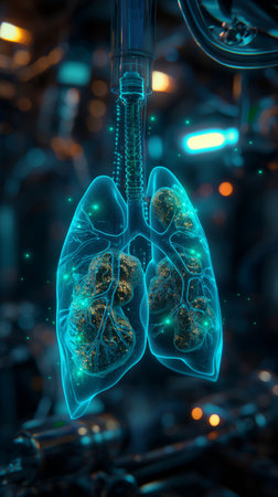 Close up view of ai medical interface for chest x ray with holographic projections in modern lab