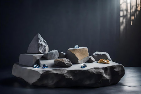 natural cubic grey rock cosmetic podium scenery with crystal in the photo studio
