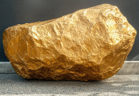 Giant gold rock on gray background