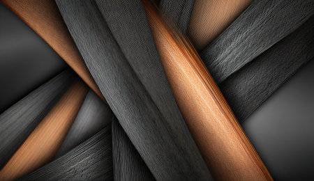 Abstract composition of intertwined wood strips, with varying tones and textures